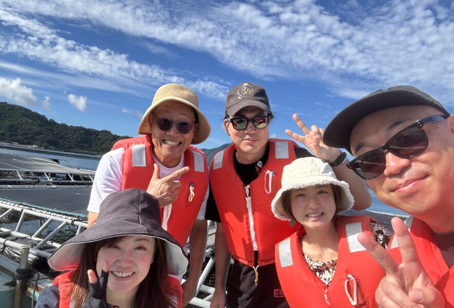 「Community Branding Japan」の活動で愛媛・宇和島にある株式会社タイチの徳弘 多一郎さん、徳弘 泰子さんの元を訪れ、宇和島の海で大切に育てられている養殖真鯛の高級ブランド「鯛一郎クン」を美味しく頂いた次の日、CBJの長嶺 将也さん、高崎 澄香さんと一緒に車で向かったのは養殖真鯛を育てられている漁場…