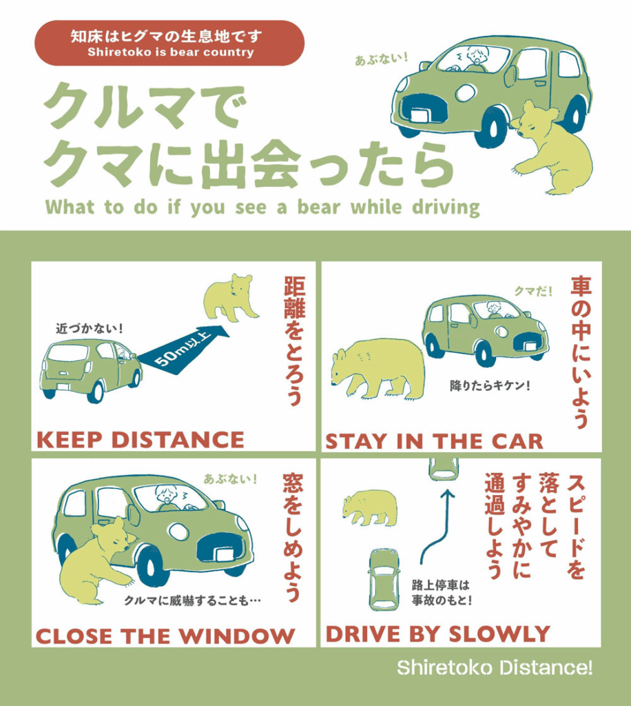 - 「撮りたい」という好奇心:熊を見つけた時、車を停めてカメラを向ける行為。実際に北海道の知床では、観光客がヒグマを見るために車を停めて渋滞してしまうという「クマ渋滞」といった問題が何年も前から起こってしまっています。これは熊に「人間は自分に危害を加えない存在」と学習させてしまいます。
